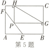5. 如图,在矩形ABCD中,E,F分别是边AB,AD上的动点,P是线段EF的中点,$PG\perp BC$,$PH\perp CD$,垂足分别为G,H,连接GH。若$AB = 8$,$AD = 6$,$EF = 6$,则GH长的最小值是