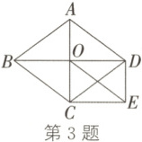 3. 如图,O为菱形ABCD对角线的交点,$DE// AC$,$CE// BD$,连接OE。若$AC = 6$,$BD = 8$,则OE的长为(