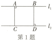 1. 如图,点A,B在直线$l_{1}$上,点C,D在直线$l_{2}$上,$l_{1}// l_{2}$,$CA\perp l_{1}$,$BD\perp l_{2}$,$AC = 3cm$,则BD的长为(