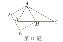 10. (2023·河北)如图,在 $Rt\triangle ABC$ 中,$AB = 4$,$M$ 是斜边 $BC$ 的中点,以 $AM$ 为边作正方形 $AMEF$。若 $S_{正方形AMEF} = 16$,则 $S_{\triangle ABC}$ 的值为(