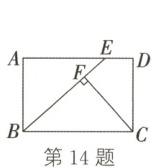 14. (2023·台州)如图,在矩形 $ABCD$ 中,$AB = 4$,$AD = 6$。在边 $AD$ 上取一点 $E$,使 $BE = BC$,过点 $C$ 作 $CF \perp BE$,垂足为 $F$,则 $BF$ 的长为