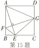 15. (2023·太原小店期中)如图,在正方形 $ABCD$ 中,$AB = 3$,$E$ 是边 $BC$ 上一点,且 $CE = 2BE$,连接 $AE$,$F$ 是边 $AB$ 上一点,过点 $F$ 作 $FG \perp AE$ 交 $CD$ 于点 $G$,连接 $EF$,$EG$,$AG$,则四边形 $AFEG$ 的面积为