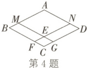 4. 如图,四边形$ABCD$是平行四边形,点$M$,$N$分别在$AB$,$AD$上,且$AM = AN$,$BM = DN$,$MG// AD$,$NF// AB$。点$F$,$G$分别在$BC$,$CD$上,$MG$与$NF$相交于点$E$,则图中的菱形共有