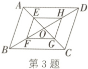 3. 如图,$□ ABCD$的对角线$AC$,$BD$相交于点$O$,$E$,$F$,$G$,$H$分别是$OA$,$OB$,$OC$,$OD$的中点。若要使四边形$EFGH$成为菱形,则$□ ABCD$应满足的条件是