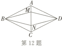 12. (2023·湘西)如图,四边形$ABCD$是平行四边形,$BM// DN$,分别交对角线$AC$于点$M$,$N$,连接$MD$,$BN$。
