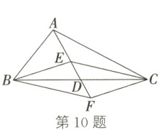 10. (2022·阳泉段考)如图,在$\triangle ABC$中,$D$是边$BC$的中点,点$E$,$F$分别在线段$AD$及$AD$的延长线上,且$DE = DF$。有下列条件:①$BE\perp EC$;②$BF// CE$;③$AB = AC$。其中,能判定四边形$BECF$是菱形的为