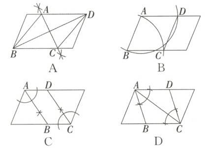 8. 若用尺规在一个平行四边形内作菱形$ABCD$,则下列作法中,错误的是(