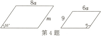 4. 如图,它们是两个相似的平行四边形,根据条件,可知 $\angle\alpha=$