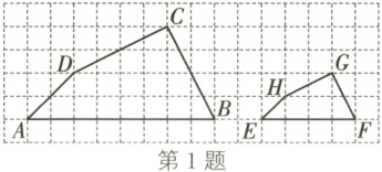 1. 如图,四边形 $ABCD$ 和四边形 $EFGH$ 相似,且顶点都在方格纸(每个小正方形的边长均为 $1$)的格点上,它们的相似比是(