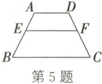 5. 如图,在梯形 $ABCD$ 中,$AD// BC$,$E$,$F$ 分别为边 $AB$,$CD$ 上的点,且梯形 $AEFD\sim$ 梯形 $EBCF$。若 $AD = 4$,$BC = 9$,求 $\frac{AE}{EB}$ 的值。