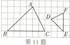 11. $\triangle ABC$与$\triangle DEF$在网格中的位置如图所示,如果每个小正方形的边长都是$1$.