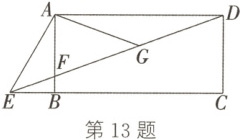 13. 如图,四边形ABCD是矩形,点E在CB的延长线上,连接DE交AB于点F,∠AED=2∠CED,G是DF的中点,连接AG.