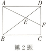 2. 如图,在矩形 $ ABCD $ 中,$ AB = 3 $,$ BC = 4 $,点 $ E $ 在对角线 $ BD $ 上,且 $ BE = 3 $,连接 $ AE $ 并延长,交 $ DC $ 于点 $ F $,求 $ DF $ 的长.