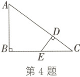 4. 如图,在 $ Rt \triangle ABC $ 中,$ \angle B = 90^{\circ} $,点 $ D $ 在边 $ AC $ 上,过点 $ D $ 作 $ DE \perp AC $,交 $ BC $ 于点 $ E $.