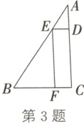 3. (2023·恩施)如图,在 $ \triangle ABC $ 中,$ DE // BC $,分别交 $ AC $,$ AB $ 于点 $ D $,$ E $,$ EF // AC $,交 $ BC $ 于点 $ F $. 若 $ \frac{AE}{BE} = \frac{2}{5} $,$ BF = 8 $,则 $ DE $ 的长为(