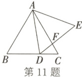 11. 如图,$\triangle ABC$和$\triangle ADE$都是等边三角形,点$D$在$BC$上,$DE$交$AC$于点$F$。若$DF = 2$,$EF = 4$,则$CD$的长是