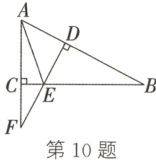 10. 如图,在$\triangle ABC$中,$∠ACB = 90^{\circ}$,$E$为$BC$上一点,过点$E$作$ED⊥AB$,垂足为$D$,延长$AC$,$DE$交于点$F$,连接$AE$。若$AE = 6$,$CE = 2$,则$\frac {CF}{BC}$的值为