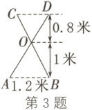 3. 如图所示为一个伸缩折叠的不锈钢晾衣架的侧面示意图,AD和CB相交于点O,点A,B之间的距离为1.2米,AB//CD,根据图中的数据,可得点C,D之间的距离为(
