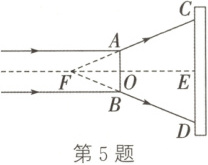 5. (教材P108习题4.11第2题变式)(2023·山西模拟)如图,在测量凹透镜焦距时,将凹透镜嵌入直径为AB的圆形挡板中,用一束平行于凹透镜主光轴的光线射向凹透镜,在光屏上形成一个直径为CD的圆形光斑.测得凹透镜的光心O到光屏的距离OE=36cm,AB=20cm,CD=50cm,则凹透镜的焦距f为