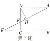 7. 如图,在矩形 $ABCD$ 中,$AB = 4$,$BC = 5$,$E$ 为边 $BC$ 延长线上一点,且 $CE = 3$。连接 $AE$ 交边 $CD$ 于点 $F$,过点 $D$ 作 $DH\perp AE$ 于点 $H$,则 $DH =$
