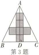 3. 如图,一块材料 $ABC$ 的形状是等腰三角形,底边 $BC = 120$,高 $AD = 120$。若把这块材料加工成正方体零件(涂色部分为正方体零件的表面展开图),则正方体零件的棱长为(