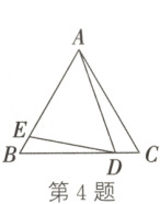 4. (2023·东营)如图,$\triangle ABC$ 为等边三角形,点 $D$,$E$ 分别在边 $BC$,$AB$ 上,$\angle ADE = 60^{\circ}$。若 $BD = 4DC$,$DE = 2.4$,则 $AD$ 的长为(