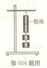 054. 如图所示,将两个表面光滑的铅块相互紧压,它们会粘在一起,下方可以挂起重物。该现象主要说明了(