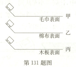 131. 在学习牛顿第一定律时,同学们分组进行了“探究阻力对物体运动的影响”实验,如图所示。