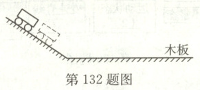 132. 小舟骑自行车时发现,猛踩脚踏板提升车速后,车子能滑行的距离比不踩时远,车子在较光滑的路面上滑行的距离比在粗糙的路面上滑行的距离要远。基于上述生活经验,小舟想知道影响物体运动的因素有哪些。于是他进行了如下研究,装置如图所示。