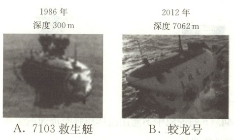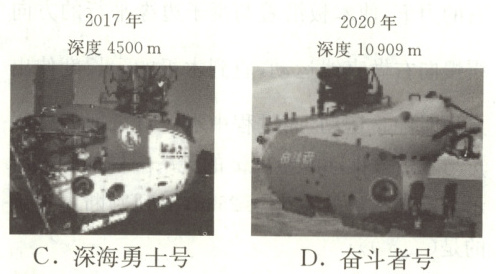 137. 从百米浅海到万米深海,中国自主研制的潜水器有了质的飞跃。潜水器下潜到表中标注的对应深度时,承受海水压强最大的是(
