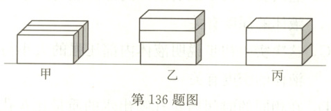 136. D 解析:设一块砖的重力为$G$,根据题图所示可知,$F_{甲}=3G$,$F_{乙}=3G$,$F_{丙}=3G$,由$p = \frac{F}{S}$可得