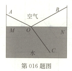 016. B 解析:根据光的反射定律,在没有光传播方向的情况下,反射光线与入射光线应该关于法线对称,过入射点$O$作垂直于界面的垂线即为法线$PQ$,