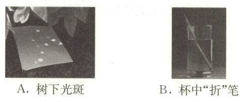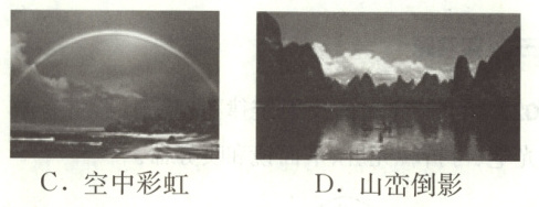 018. D 解析:树下光斑是由于光沿直线传播形成的;杯中“折”笔和空中彩虹,是由于光的折射而形成的;山峦倒影是由于光的反射而形成的。故选D。