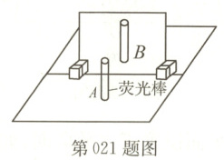 021. 如图所示,利用两根相同的荧光棒来探究平面镜成像的特点。