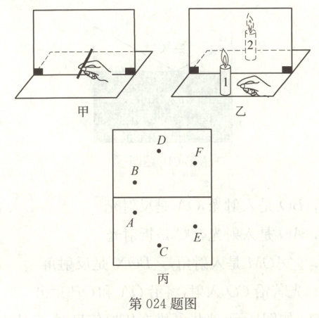 玻璃板的方向移动,才能与蜡烛1的像再次重合;(3) 三次实验中物和像的位置记录如图丙所示。他在探究像和物的连线与平面镜的位置关系时,用直线连接图丙中物点A与像点