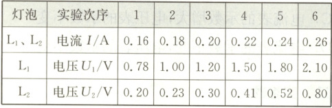 (2)为进一步探究玻璃外壳破碎后 $ L_2 $ 电阻变化的特点,对 $ L_2 $ 的电流和电压进行测量,实验数据记录如表所示。分析发现,$ L_1 $ 的电阻