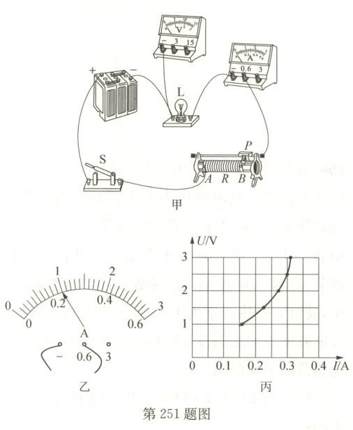 251. 在“测量小灯泡的电功率”实验中,小华准备了以下器材:电源、标有“2.5V”的小灯泡、电流表、电压表、滑动变阻器、开关、导线若干。请完成下列问题: