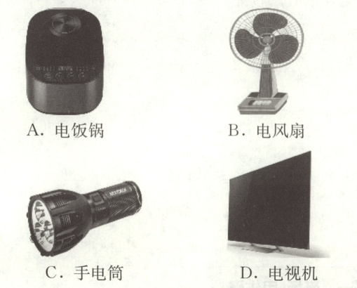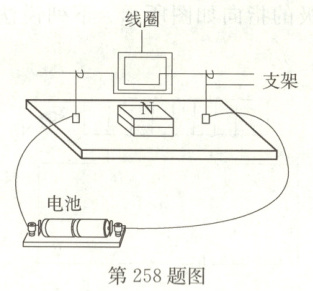 257.B解析:“爱心”电动机工作是利用通电导体在磁场中受到力的作用的原理来工作的。电饭锅是利用电流的热效应来工作的,故A不符合题意;电风扇是利用通电导体在磁场中受到力的作用来工作的,故B符合题意;手电筒工作时将电能转化为光能,是利用电流的热效应,故C不符合题意;电视机工作时主要是把电能转化为光能和声能,故D不符合题意。