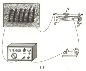 (1)将螺线管安装在一块有机玻璃板上,连入电路中。在板面上均匀地撒满铁屑,闭合开关并轻敲玻璃板面,观察到铁屑分布情况如图甲所示。铁屑的分布情况与
