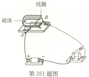 261. 将自制的电动机接入电路,如图所示,其中支架A是