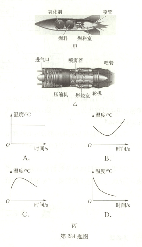 (4)如图乙所示的空气涡轮喷气发动机,在工作的过程中,气体温度是不断变化的。图丙中,能大致反映气体的温度随时间变化的关系图像是。