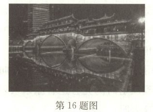 16. 夜幕降临,横跨成都锦江两岸的安顺廊桥灯火璀璨,夜色让人陶然而醉……正所谓“锦江灯月遥相近,烟火市井三千年”。如图所示,水中“灯影”是由于光的