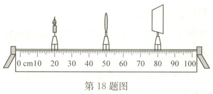 18. 探究凸透镜成像规律的实验中,蜡烛、凸透镜、光屏的位置如图所示,光屏上恰好成清晰的像,该像是倒立、