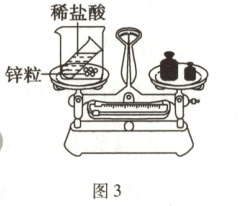 (7)如图3所示,天平平衡。倾斜烧杯,使盐酸与锌粒接触,托盘天平指针将逐渐偏(填“左”或“右”)。