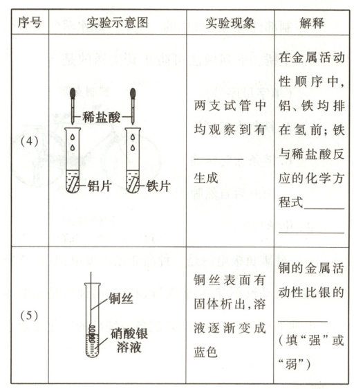 (6) 验证铝、铁金属活动性的强弱,可选择的试剂是(填字母序号)。