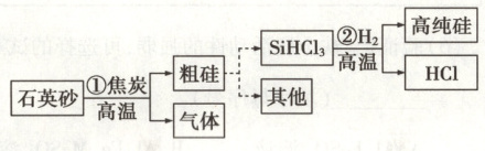 硅碳负极电池是一种高能量密度电池,广泛应用于电动汽车、航空航天等领域。高纯硅是制造该电池的原料之一,下图是制备高纯硅的简化工业生产流程。