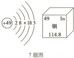 7. 铟元素在手机屏、5G核心材料等方面有广泛应用,铟原子的结构示意图及铟元素在元素周期表中的相关信息如图所示,下列说法不正确的是(