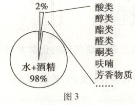 无论什么品牌的酒,其成分 98%以上都是水和酒精,不同酒的味道差异来自 2%的其他成分,比如醛类、酯类和芳香族类。酒的成分比例如图 3 所示。