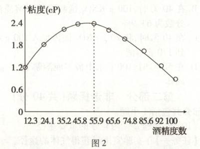 (5) 图 2 是酒精度数对酒粘度影响的曲线图,分析该图可得到的结论是
