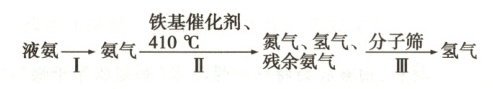 (填“物理”或“化学”)变化。③若用 50 kg 液氨制得了 6 kg 氢气,则该流程中氨气的转化率为